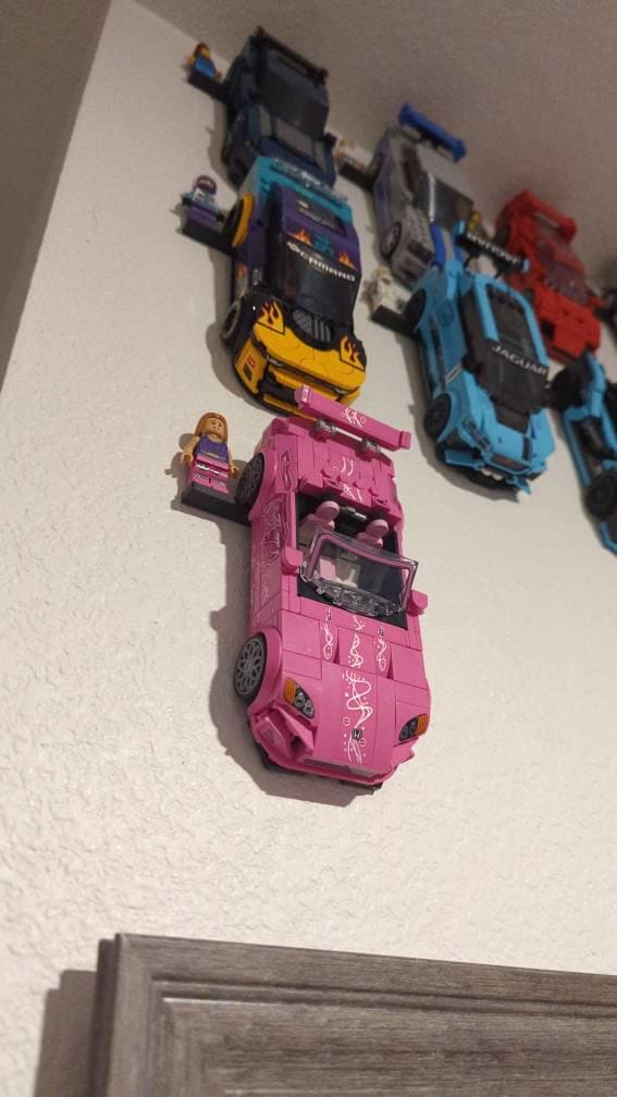 This mount will work with speed champions cars made on the 8 brick wide platforms and securely holds the wheels to keep your car safely mounted flush to the wall. This is most cars released from 2020-now. All mounting hardware is included (1 or 2 nails). Feel free to reach out with any questions!
