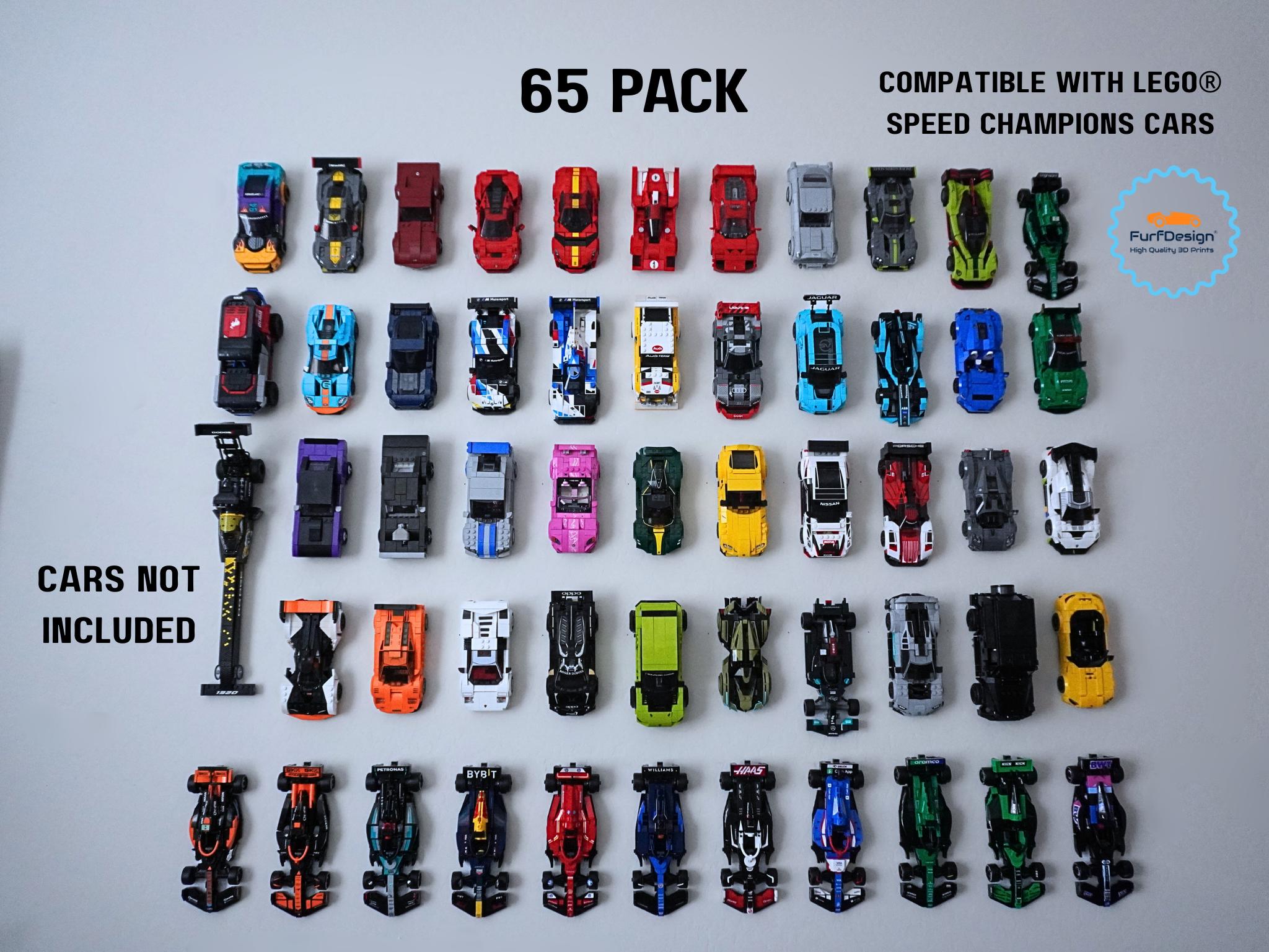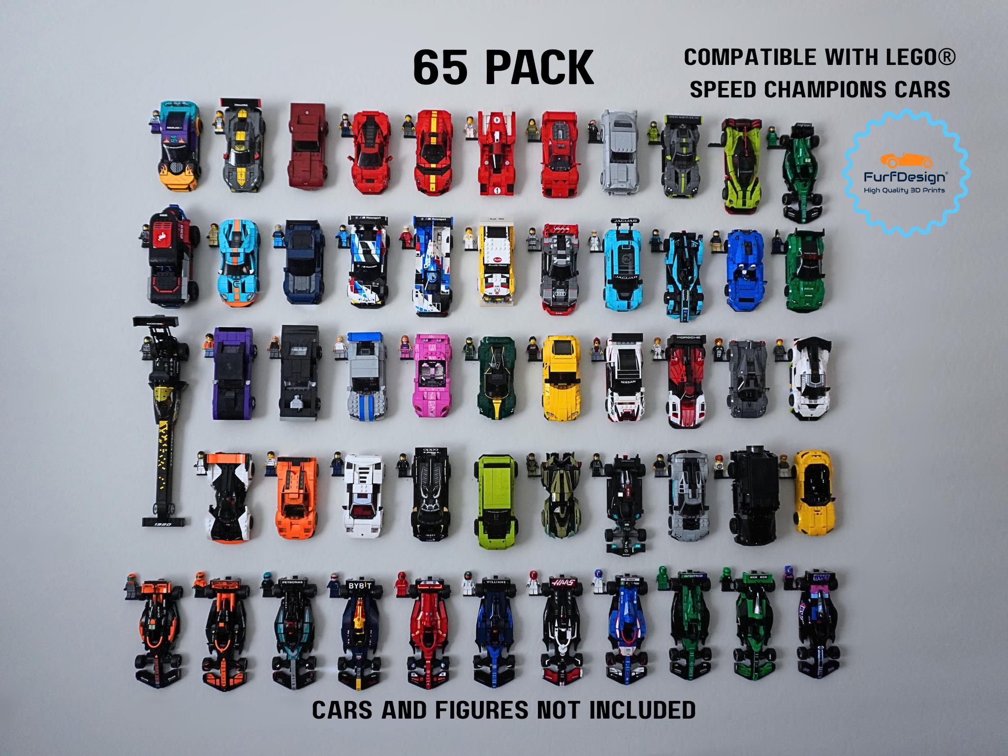 This mount will work with speed champions cars made on the 8 brick wide platforms and securely holds the wheels to keep your car safely mounted flush to the wall. This is most cars released from 2020-now. All mounting hardware is included (68 nails). Feel free to reach out with any questions!