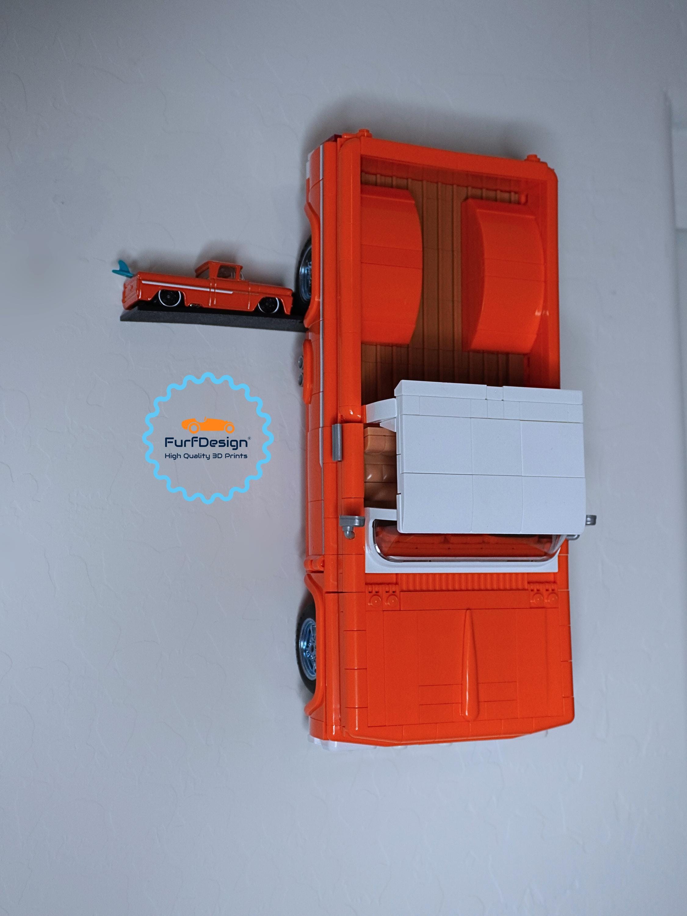 This mount will work with elite series cars from Mattel Brick Shop and securely holds the wheels to keep your car safely mounted flush to the wall. All mounting hardware is included (2 drywall anchors and 2 screws). Feel free to reach out with any questions!
