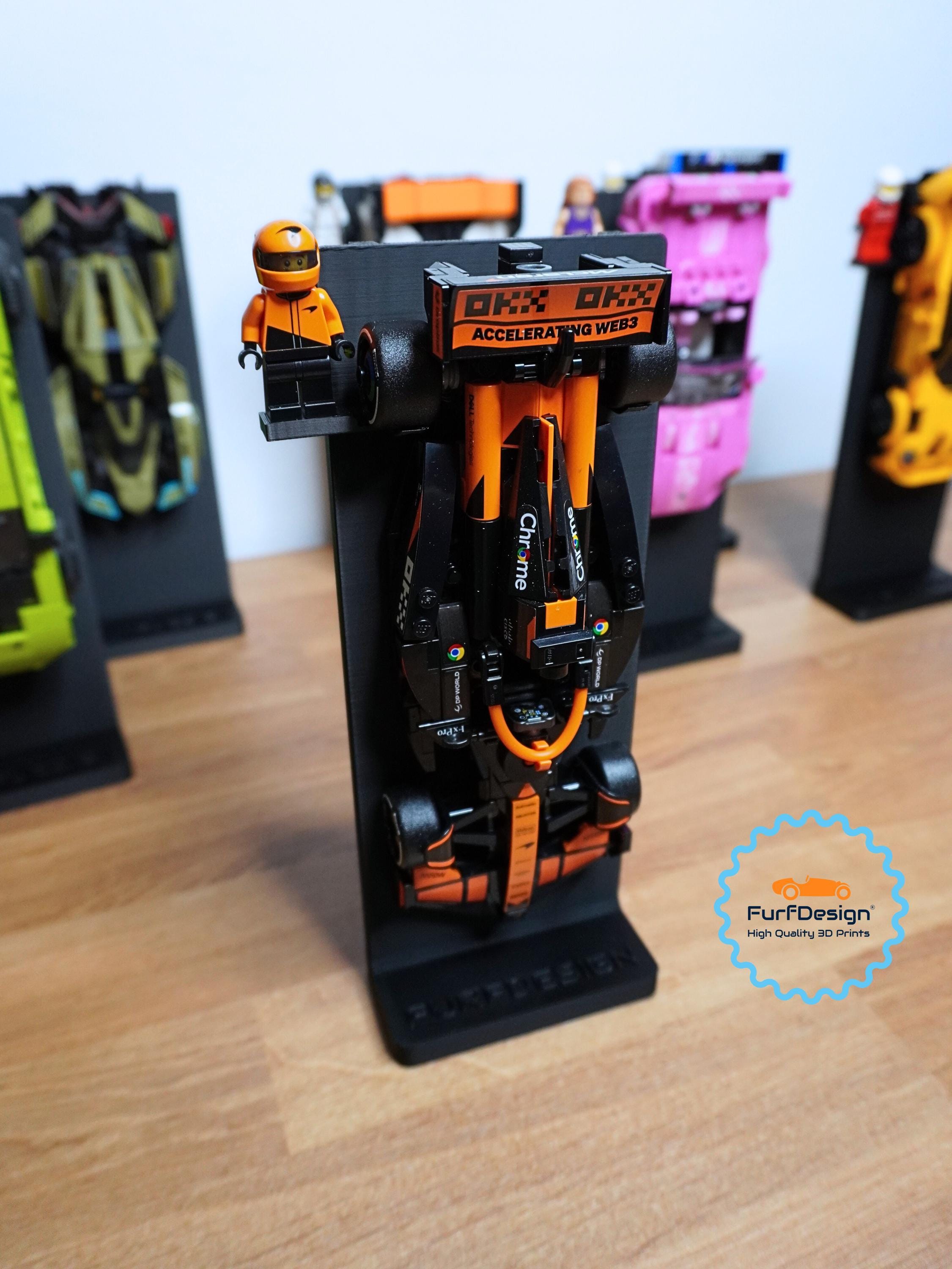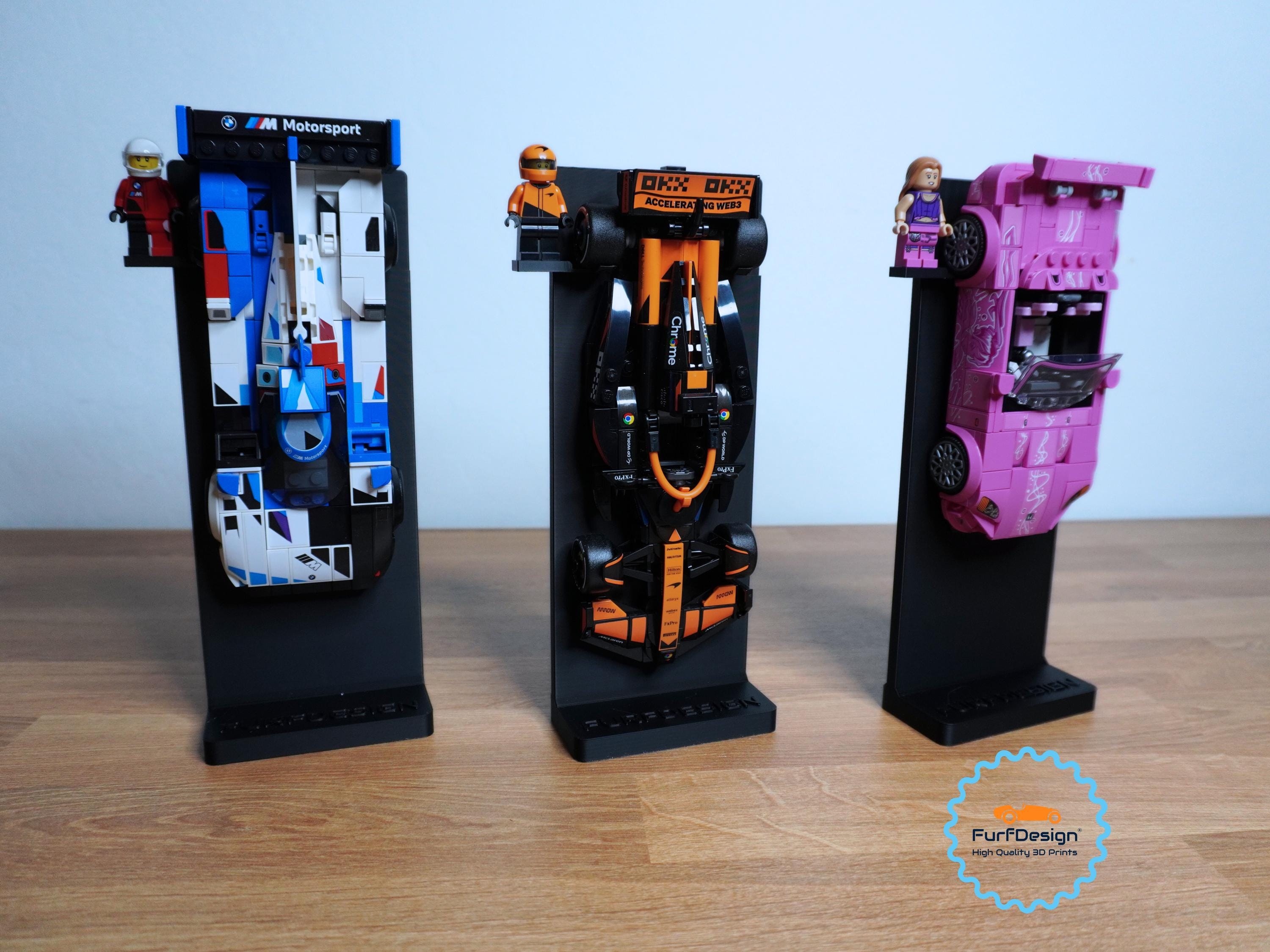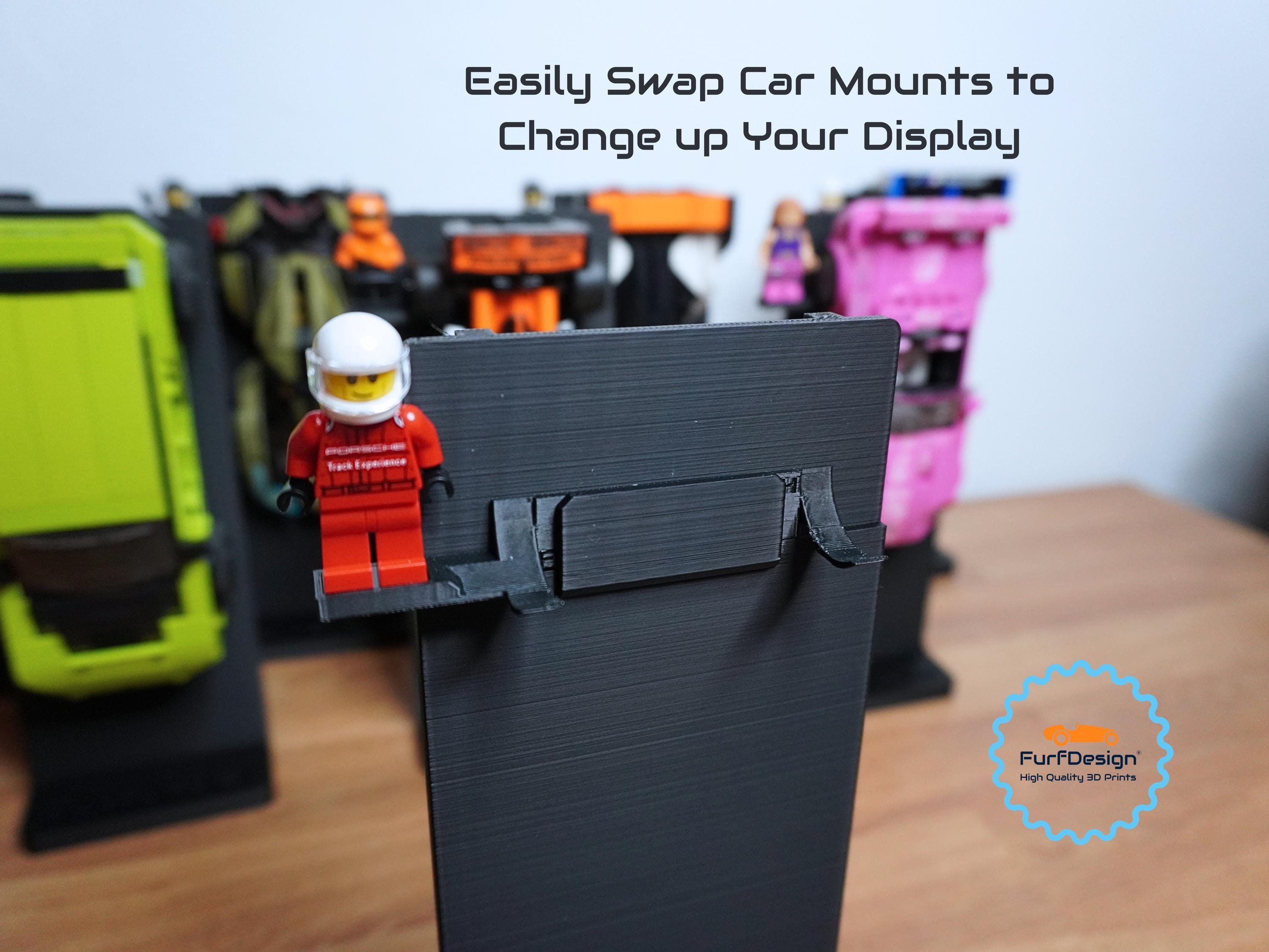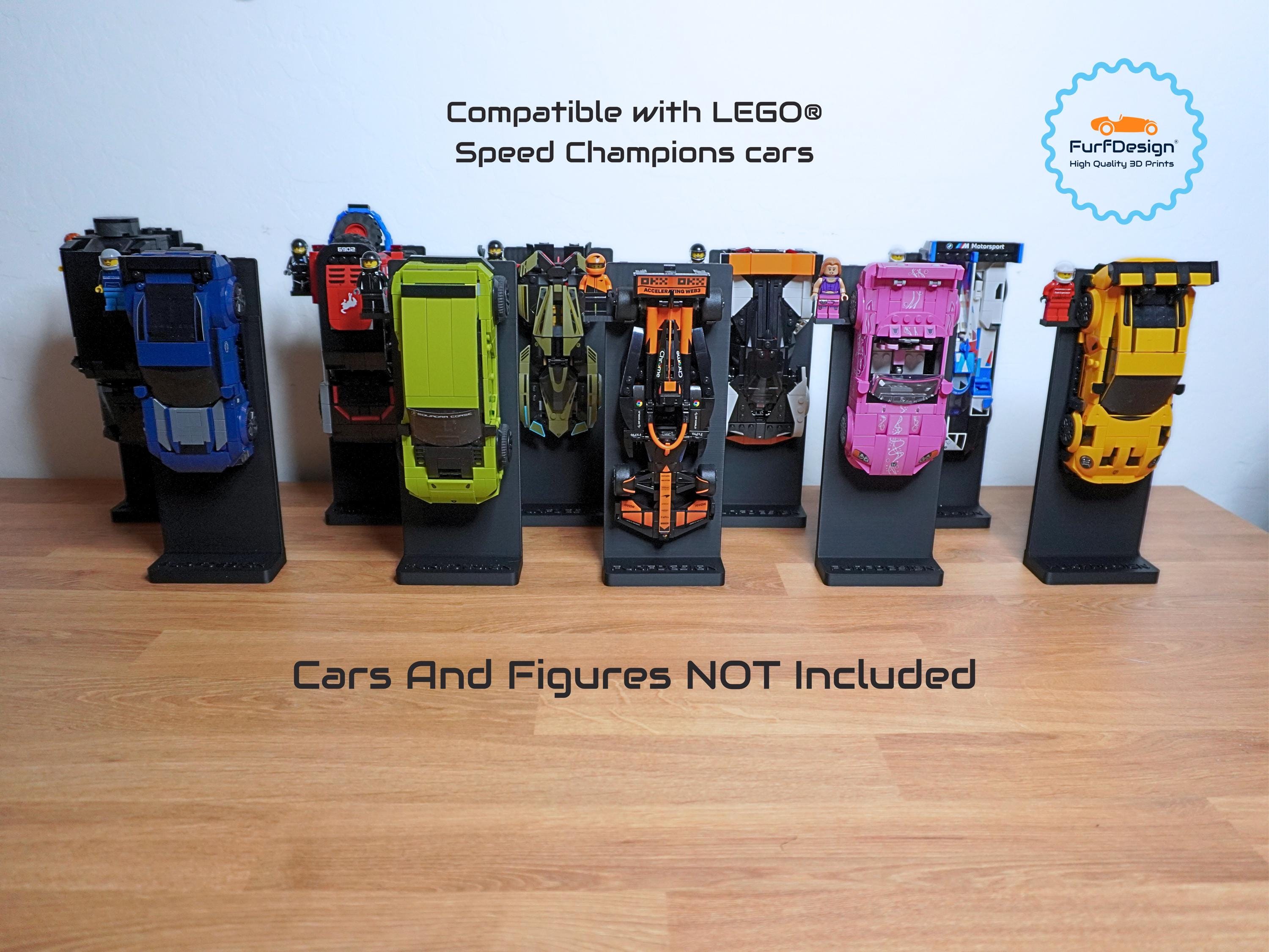 This mount will work with speed champions cars made on the 8 brick wide platforms and securely holds the wheels to keep your car safely mounted on the desk stand. This is most cars released from 2020-now. A single car mount is included with each desk display so be sure to select the size needed for your car. If you need additional car mounts, you can purchase my "FurfDesign Wall Mount for Speed Champions Brick Cars and Figures; The Original (8-stud wide; 2020-Now)" and slot them in to change up the display. Feel free to reach out with any questions!